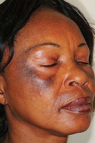 圖: 對苯二酚的副作用--赭色病(ochronosis),這是因為長期使用對苯二酚導致的皮膚病,如果使用高濃度劑量,更容易發生此現象,而且一旦發生後, 由於色素沉積於真皮層,極難去除。圖片來源:J Clin Aesthet Dermatol. 2010 Jul;3(7):20-31.