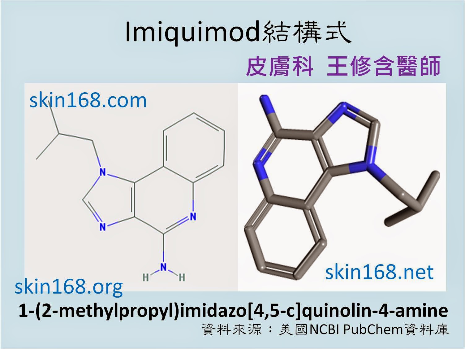 Imiquimod的化學資料與結構式,整理/製圖:王修含醫師,原始資料來源:美國NCBI PubChem資料庫 |