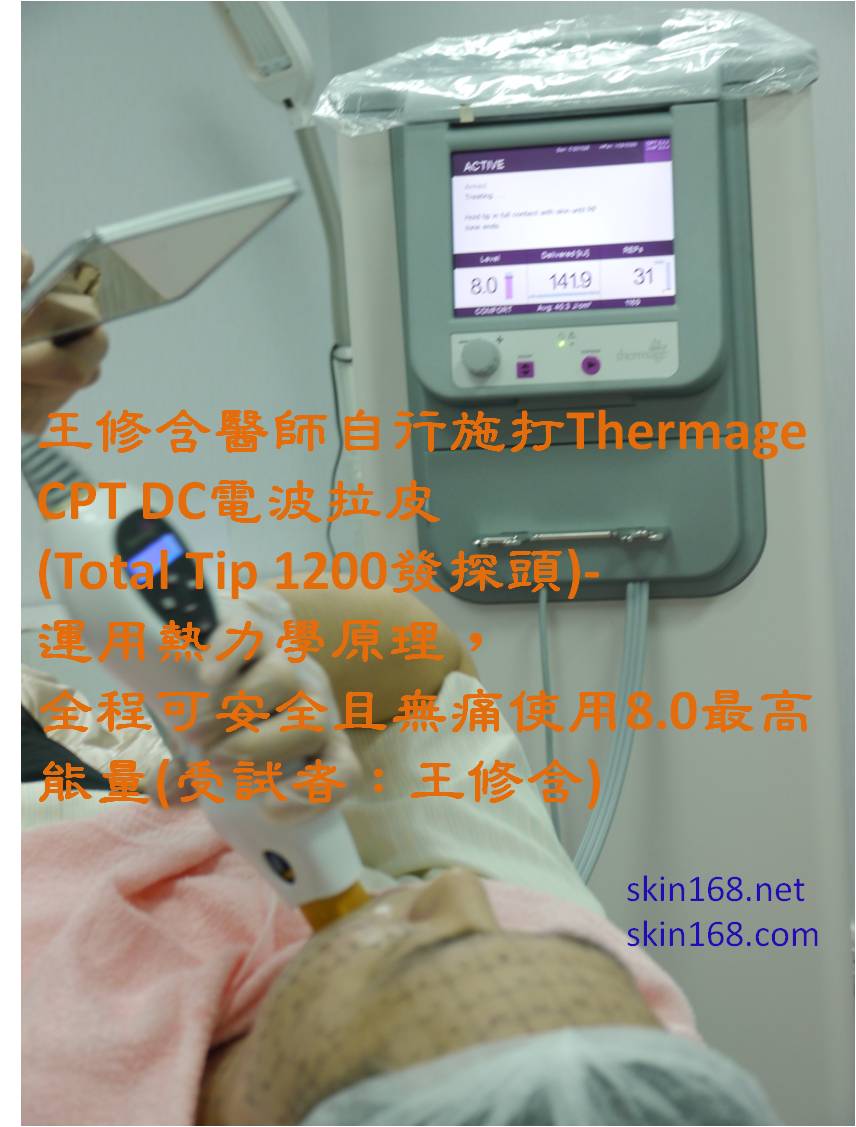 | 王修含醫師自行施打Thermage CPT DC電波拉皮 (Total Tip 1200發探頭)-運用熱力學原理,可在全程清醒且不使用任何外用或注射式麻醉藥物下,安全且無痛使用8.0最高能量(受試者:王修含) |