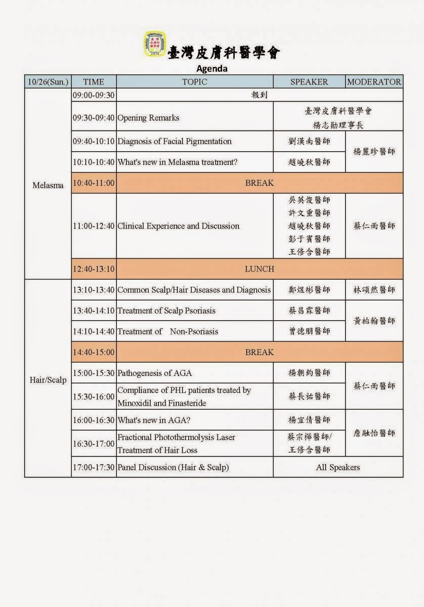 王修含醫師演講:肝斑治療、毛髮再生治療(台灣皮膚科醫學會)